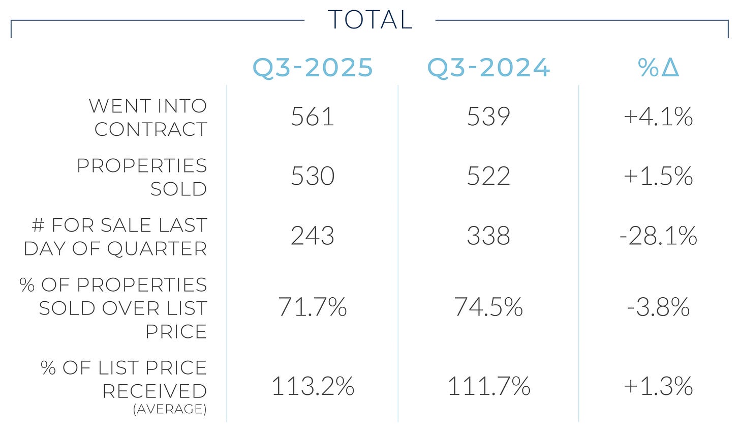 With 530 homes sold and only 243 left on the market at quarter’s end, San Francisco is moving at more than twice its available inventory. In practical terms, that means well-priced homes don’t linger. They attract multiple offers, and 72% still sell above list. Sellers received an average of 113% of their asking price, a level of competition that feels more 2021 than 2025.
